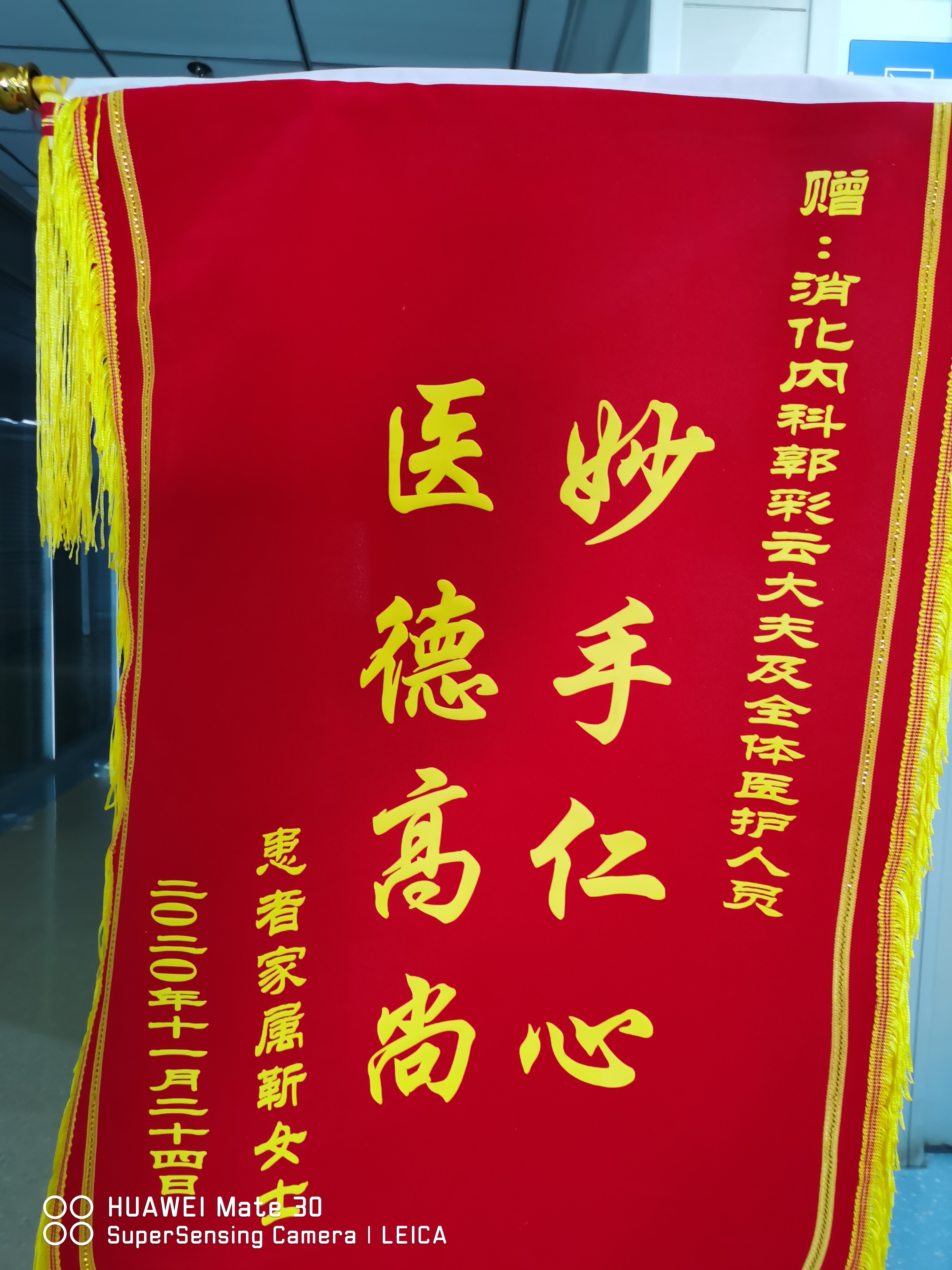 消化内科医生郭彩云收到患者锦旗,并感谢全科医护人员