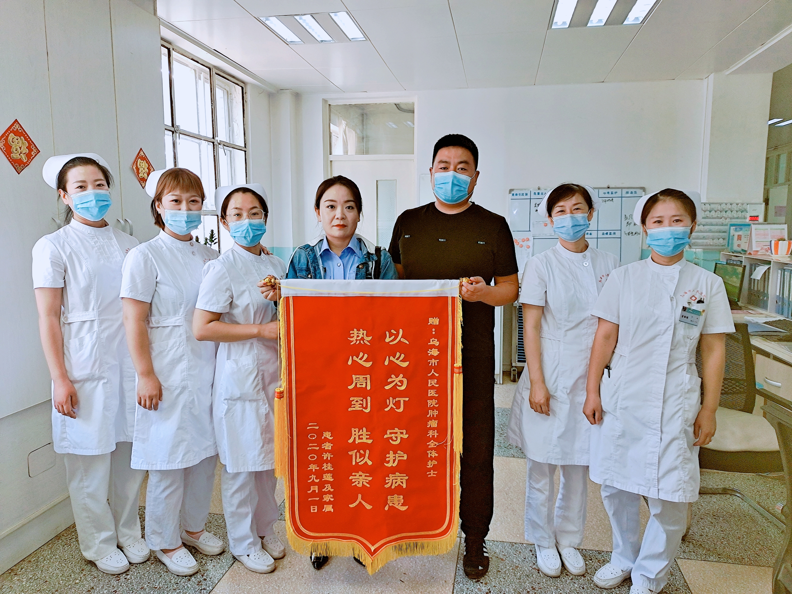 患者徐桂莲肺恶性肿瘤,感谢肿瘤科全体护士精心照护,家属送锦。