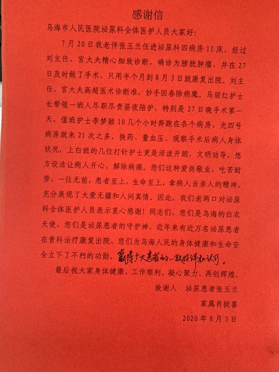 泌尿外科收到患者来信