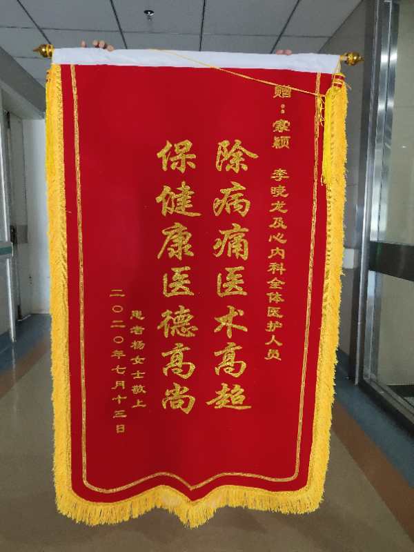 心内科收到患者锦旗——患者不稳定心绞痛 ,支架术后,已好转出院。