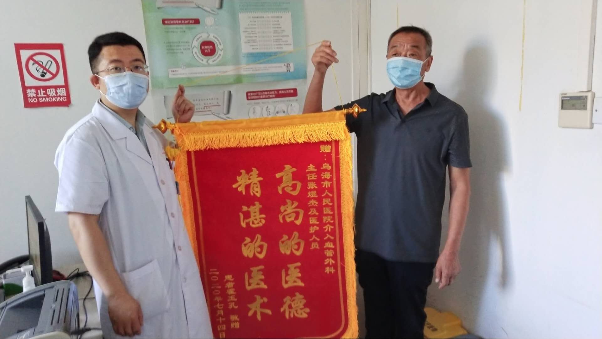 介入科收到患者锦旗——患者下肢静脉曲张术后,手术效果非常好,向张煜杰主任及其全体医护人员表达感谢。