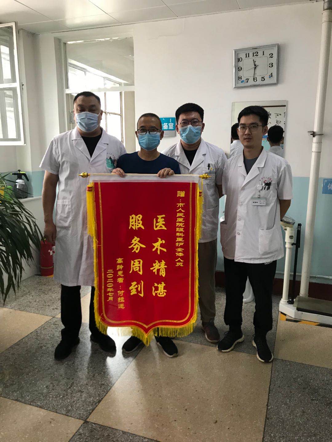 眼科患者白内障术成功,向眼科全体医护人员表示感谢。