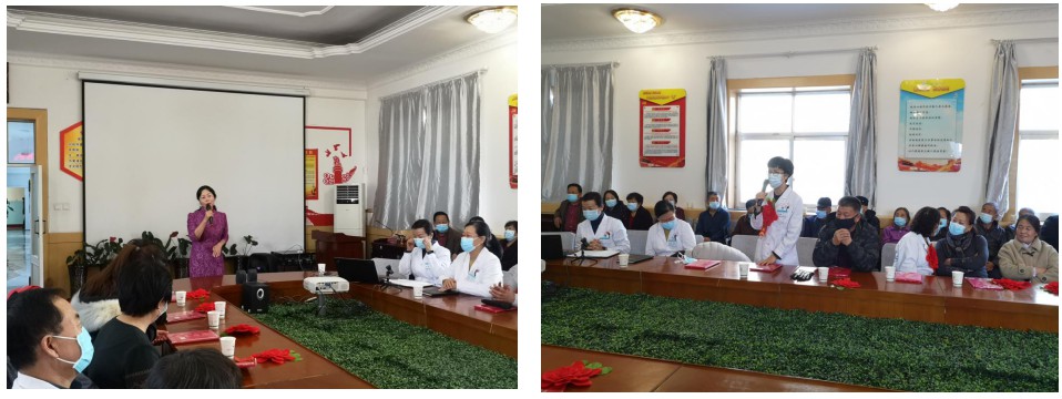 紧接着,党委副书记崔莲为2020年退休的十八位同志颁发了退休荣誉证书并代表领导班子致辞。她先向今年退休的同志表示衷心的感谢和美好的祝愿。既肯定了同志们在医院发展建设中的辛勤耕耘、无私奉献,也希望他们在医院发展建设中继续发挥余热。同时,她向参会的所有老同志表达了亲切的问候。她说医院发展建设中取得的一系列成就,凝聚了医院退休职工在内的几代人的心血和智慧,是全体医院人精诚团结、努力奋斗的成果。在新的一年里,院党委和领导班子将认真落实离退休人员的各项政策,认真解决离退休人员工作中出现的新情况、新问题,多为离退休人员办实事、办好事。祝福老同志们身体健康,生活幸福,万事如意!