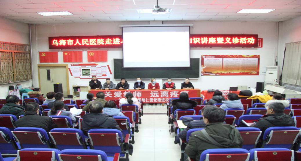 12月15日,市人民医院手术麻醉科疼痛门诊主治医师武瑞泉、手术麻醉科疼痛门诊主任医师李晓波、骨科副主任医师邬晶、医务社工部、文明办及我院医疗志愿者们共同来到乌海市第一中学为教师进行义诊志愿服务活动。