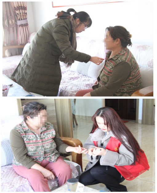 见到杨女士后,护士长和医疗志愿者们首先为杨女士进行伤口查体,查体后发现杨女士伤口恢复情况良好,无感染现象。血压正常,但是血糖过高,问询杨女士近期饮食后得知,术后不少亲朋好友提着瓜果补品来到家里慰问自己,且元旦临近,父母公婆也做了不少肉食送来,自己的老公还拖朋友找来一大甲鱼给自己炖了个“十全大补汤”一天一碗,强身健体。虽说自己每天也按时吃降压降糖药,但面对一桌子的美味佳肴着着实忍不住。