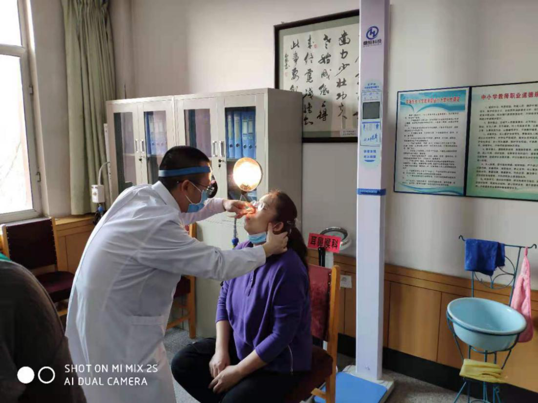 支部青年委员王刚为老师们做了咽喉、鼻腔、外耳道的检查,提醒大家要保护声带,预防用嗓过度,并就“过敏性鼻炎”、“慢性咽炎”、“眩晕”等常见病进行了健康宣教。支部书记、烧伤整形科主任王志刚同志就常见体表良恶性肿瘤做了健康科普,详细解答了类似“皮肤黑痣会恶变吗?”、“脂肪瘤需要手术切除吗?”等健康咨询。医务社工部苗鸿如同志负责前期与学校沟通对接,车辆安排、现场引导等工作,为义诊活动的顺利开展,做好前期工作。