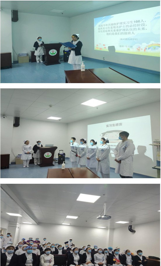 接近尾声时,心内科的马玉婷护士献上一段声情并茂的演讲,一份献给实习生的寄语,让在场的实习生们感动,让高年资护士回忆起刚走上工作岗位时的懵懂,也让我们更加坚定的将南丁格尔精神传承下去。