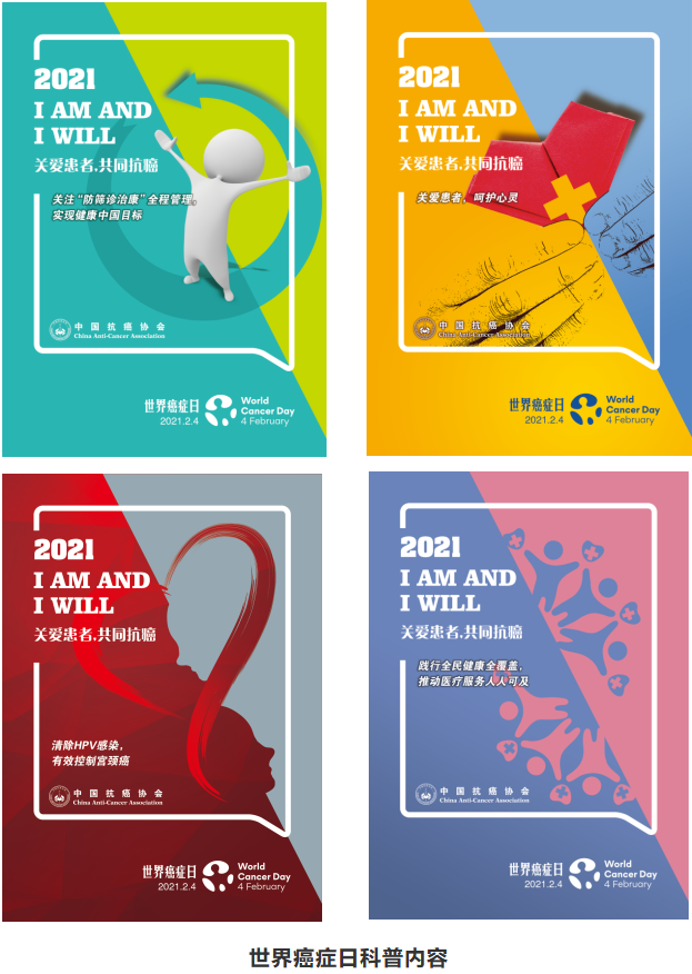 2021年,国际抗癌联盟(UICC)“世界癌症日”的活动主题为“关爱患者,共同抗癌(I am and I will)”。本次活动由中国抗癌协会主办,重庆医科大学附属第一医院、中国抗癌协会乳腺癌专委会承办,活动内容将聚焦主题,并结合健康中国2030规划纲要提出的癌症防控措施建议,开展科普宣传、患者教育、媒体访谈等宣教活动,以推动我国癌症防控事业的发展。