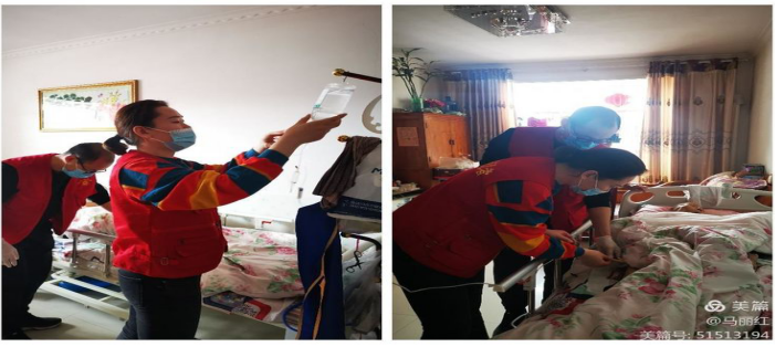 阳春三月,乌海市人民医院泌尿外科医疗志愿者走进新天地小区为一瘫痪多年,尿潴留长期留置尿管、有尿道漏的一名患者进行家庭护理,医生宫兆元为患者进行病情评估,更换导尿管。