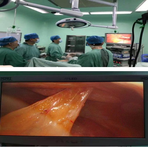 我院日间病房刘峰主任医师介绍:德国医师2013年首先介绍了微小切口开放的修补方式,是一种目前适用于绝大多数原发性或复发性腹壁疝修补的新的微创技术。通过这次手术,我们已经完全掌握这项腹壁疝微创手术的操作,有独立开展腹壁外科的能力。