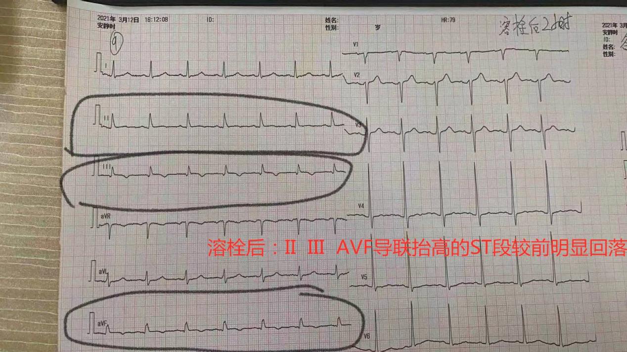 到达千钢卫生院后复查心电图示:急性下壁ST段抬高型心肌梗死(STEMI),得知病情后患者及家属焦急万分。考虑到千钢卫生院转运至乌海市人民医院需要50分钟车程,而患者胸痛发作已经持续2小时以上!及早的开通犯罪血管,成为了当前治疗的重中之重。对于STEMI患者而言,时间就是心肌,时间就是生命!龙旭医生当机立断,决定采取院前溶栓治疗方式,为患者争取黄金抢救时间。经过快速的排查与沟通,家属的情绪也逐渐稳定下来,决定全力配合医护人员进行相关治疗,溶栓工作随即展开。救护车伴随着尖锐的警报声飞驰在返回急诊科的途中,车内的气氛也变得凝重起来,作为一名专业的医生,我们明白,面对着患者随时出现的心律失常,血压骤降等危重情况,每一个参与抢救的人都不能掉以轻心。经过近1个小时的紧急转运,患者平安到达乌海市人民医院急诊科,而溶栓工作已经在途中全部完成,通过监护观察,患者抬高的ST段回落至基线,胸痛症状也明显缓解,溶栓成功!这一场与时间的赛跑,我们取得了最终的胜利!