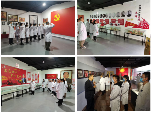 述往思来,向史而新。医技支部在红色教育基地的党旗下庄严的进行了宣誓后,以现场参观的形式重学党史,通过对一个个历史人物、一桩桩历史事件的深入学习,做到学史明理、学史增信、学史崇德、学史力行,在对历史的深入思考中,领悟到一切向前走,都不能忘记曾经走过的路,更不能忘记为什么出发,必须始终做到不忘初心、牢记使命,把党和人民医疗卫生事业发展不断推进下去。