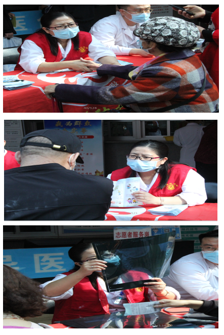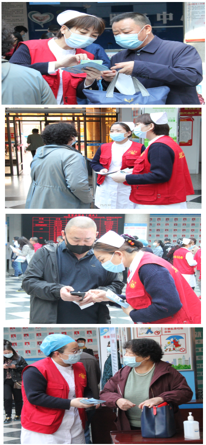 神经内科护士长、主任护师国世琴,主管护师刘亚娟,护师石月,护士梁羽彤通过悬挂横幅、发放宣传资料和手册等形式,向群众宣传预防和治疗帕金森病的相关知识。