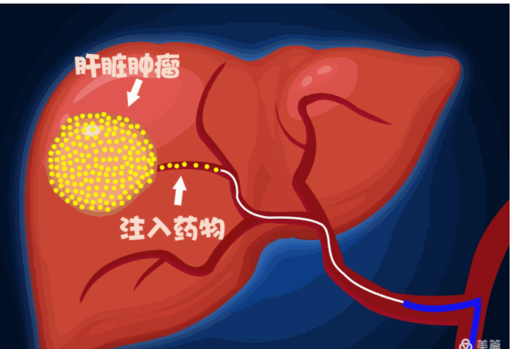 将微导管输送入肿瘤的供血动脉,通过微导管将化疗药物和栓塞微粒顺序注入,药物杀死肿瘤,同时堵住肿瘤的供血动脉减少肿瘤血供。