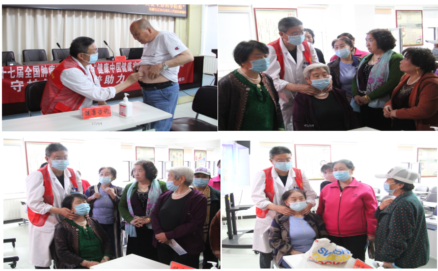 肿瘤科主任、主任医师张玉超利用PPT图文并茂的给社区居民讲解了关于乳腺癌防治防治知识,呼吁大家选择正确的诊疗方式,即做到“早发现,早诊断,早治疗”,摒弃因害羞、恐惧、怕花钱、没时间等种种因素推迟或放弃就诊,从而延误病情,导致肿瘤扩散及癌变。宣讲结束后,张玉超主任现场义诊,不少居民围在张主任身边,耐心等待。张玉超主任在检查居民有相关乳腺疾病的同时也为居民们做了甲状腺疾病筛查,对有疑似甲状腺疾病的居民提醒他们及时到医院进行专业治疗。