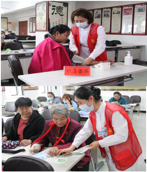 肿瘤科护士长、副主任护师刘佳玥大家介绍了关于乳腺自查的方法,同时耐心解答大家的提问,鼓励大家积极参与到肿瘤自我防护中,通过现代医学检验、定期体检方式进行肿瘤早期筛查。护师王金米、张桂圆为在场居民检测血压并发放了肿瘤防治宣传手册、健康知识宣传手册、健康小礼品等。