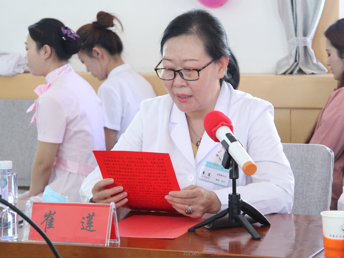 党委副书记崔莲在致辞中向全体护理工作者致以节日的祝贺和诚挚的问候,她说: