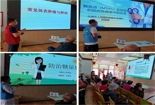 活动现场,医务人员通过幻灯片以图文并茂的形式,向社区居民进行健康科普,教授防病常识。烧伤整形科主任王志刚以常见体表肿瘤与肿块为题,结合临床真实案例,用通俗易懂的语言,为居民们详细讲解了一些常见体表肿瘤分类和临床表现以及良性恶性体表肿物的鉴别诊断,提醒居民们发现体表肿物后要引起重视,早发现,早诊断,早治疗。