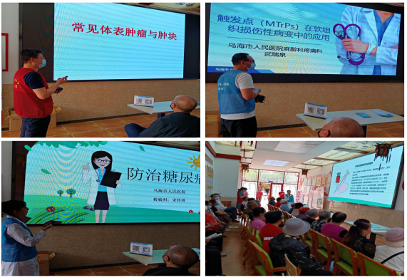 活动现场,医务人员通过幻灯片以图文并茂的形式,向社区居民进行健康科普,教授防病常识。烧伤整形科主任王志刚以常见体表肿瘤与肿块为题,结合临床真实案例,用通俗易懂的语言,为居民们详细讲解了一些常见体表肿瘤分类和临床表现以及良性恶性体表肿物的鉴别诊断,提醒居民们发现体表肿物后要引起重视,早发现,早诊断,早治疗。