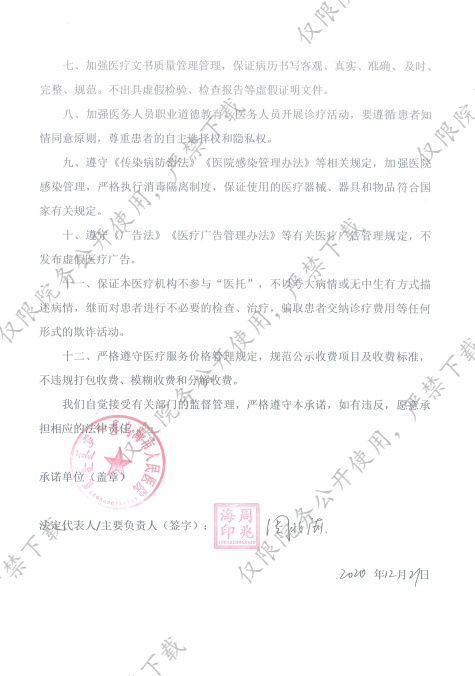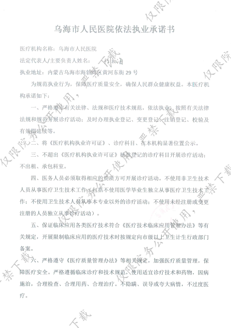 乌海市人民医院依法执业承诺书